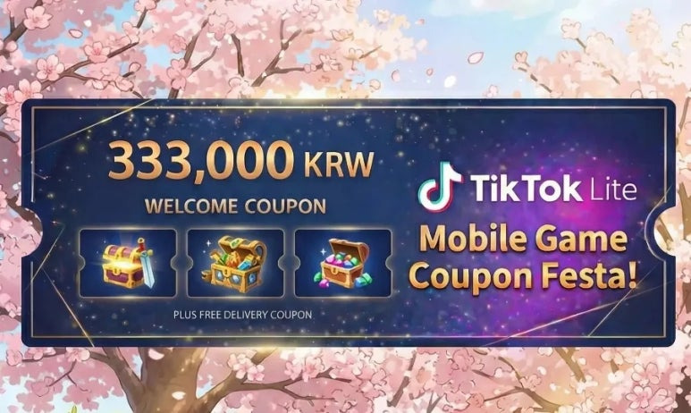 4.메인 화면 아래쪽의 [틱톡라이트와 봄을 기다리며 3월 모바일게임 쿠폰 페스타 진행해봄~!] 배너를 탭합니다.