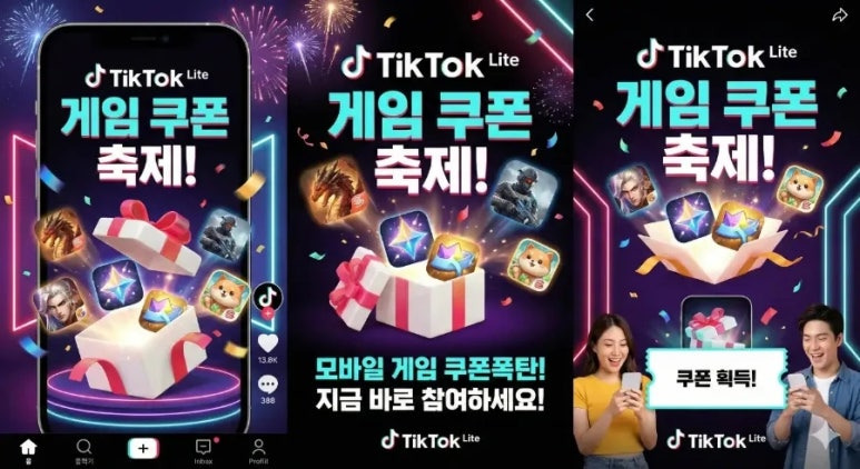 4.메인 화면 아래쪽의 [틱톡라이트와 봄을 기다리며 3월 모바일게임 쿠폰 페스타 진행해봄~!] 배너를 탭합니다.